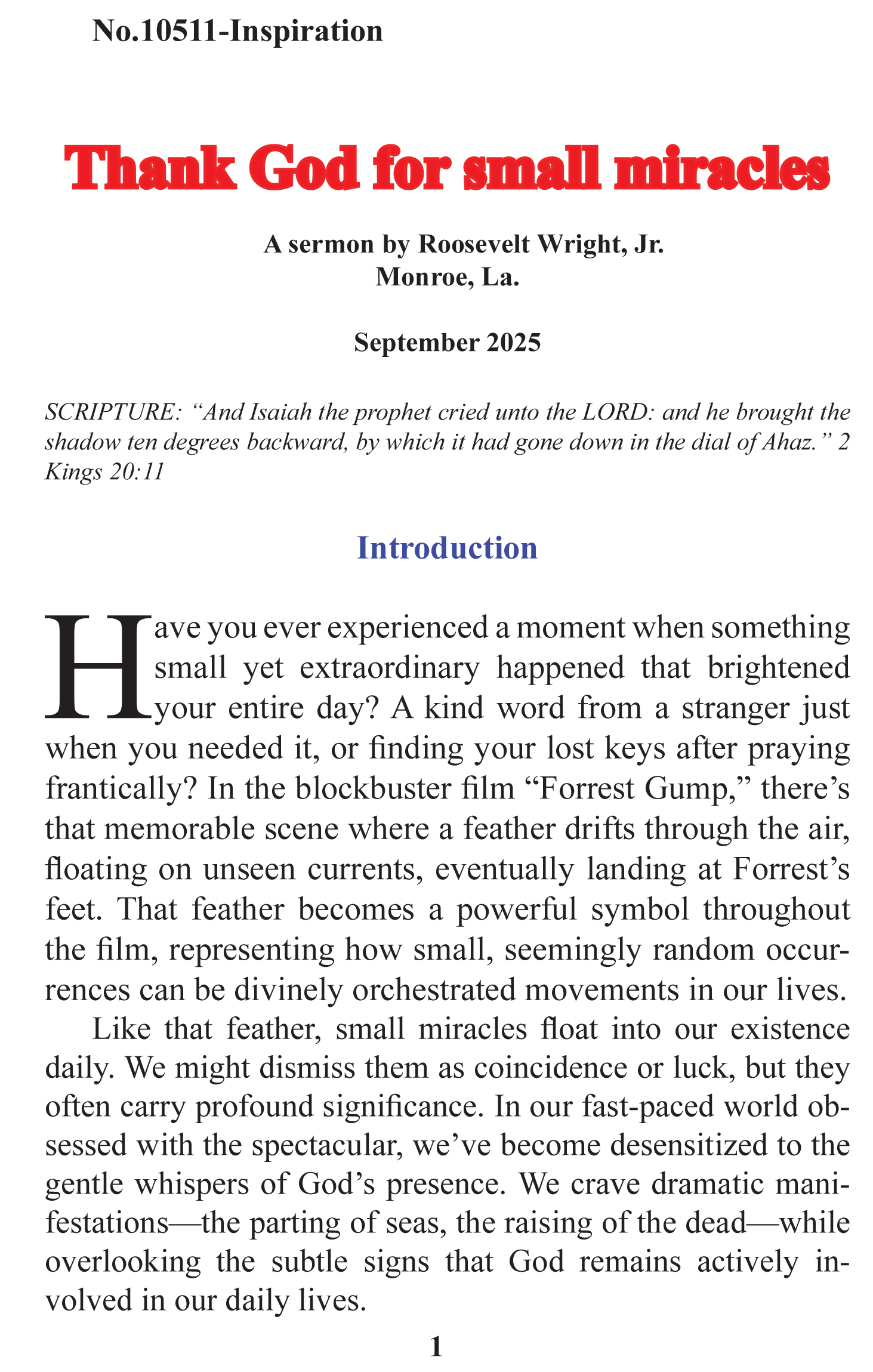 We must learn to recognize and appreciate the small miracles that God gives us everyday.