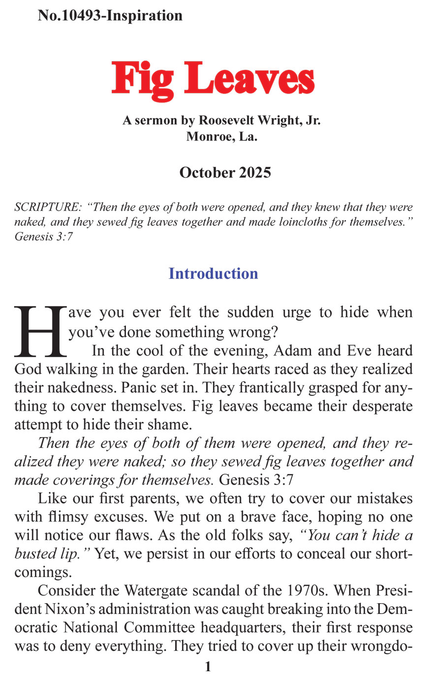 We must recognize that our fig leaves of excuses can't hide us from God's all seeing eye. He knows.